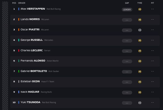 随着五盏红灯熄灭,2025赛季F1收官站——阿布扎比站正赛正式开始!维斯塔潘切线起步,相当干脆的稳住自己的领先位置!随后令人意外的是,白胎起步的皮亚斯特里竟然在9号弯从外线超越黄胎起步的诺里斯来到第二,让诺里斯去到了第三名的位置。