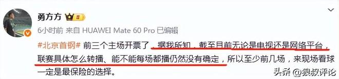 北京时间12月8日,CBA杯赛将于今天正式结束,这就意味着下一阶段即将进入到真刀真枪的常规赛阶段。而外界重点关注的转播话题,引发外界的持续关注。 根据媒体人“勇方方”发文:北京首钢 前三个主场开票了,据我所知,截至目前无论是电视还是网络平台,联赛具体怎么转播、能不能每场都播仍然没有确定,所以至少前几场,来现场看球一定是最保险的选择。本届的CBA俱乐部杯赛直播相对比较多元化,既有咪咕,也有央视频,甚至DY平台直播。至于为何造成这样的情况,很多媒体和球迷猜测与CBA官方、咪咕之间拉扯存在直接的关系。上一份的5年20亿合同到期后,双方均对合作有不满的地方。 根据媒体人杨毅此前的报道,2020年,新的转播周期,咪咕和CBA公司签了一个巨大的合同,5年20亿,相当每年4个亿,在当时是属于天价,代表中国移动作为国企来说对中国篮球的支持。 当时移动的高层与姚主席关系,还有与NBA过来高级副总裁王大为都有直接关系。在这个周期咪咕是CBA最大金主。它比李宁,中国人寿给的都多,但在过去5年,无论是CBA,还是咪咕对于这个合作都有不满意,咪咕不满是平台得算账,花了这么多钱,版权没有买回来,观众得买会员,转播过程当中有广告投入,从这两点回本,但远没有达到咪咕的预期。CBA联赛的口碑,广告收入等都没有达到预期,咪咕有英超版权对比,英超转播很多广告,同样的版权费用,CBA达不到版权效果。CBA公司不满意的地方是上一份与咪咕合同并不是真正独家合同,CBA一直不喜欢只有一家版权,过去几年一直希望卖给多个平台,比如腾讯,想买一些比赛,比如重点比赛,季后赛,总决赛。但这里涉及一个国际惯例,叫同权同价,比如腾讯要买一场比赛也好咪咕一样。咪咕合计一场40万,腾讯就要出40万。要不咪咕就亏大,过去5年,一场比赛50万都没有人买。去年的CBA俱乐部杯,新开赛事当中,在过去合同并没有,咪咕要转播得加钱。但是俱乐部杯分成了小组赛和决赛,但是CBA把决赛阶段版权根据同权同价卖给腾讯和直播吧(直播吧从来不花钱买版权),它都觉得太便宜了。