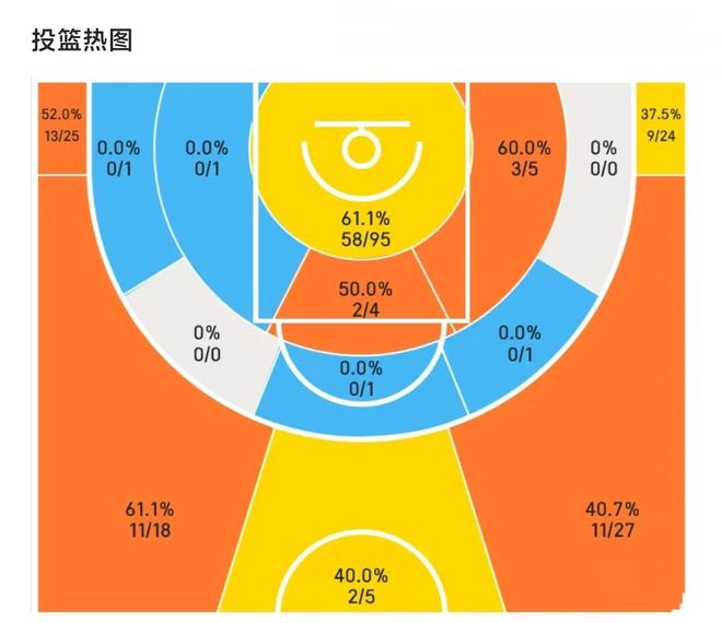 从投篮出手分布来看,中距离投篮基本一片空白,完全分布在三分线和禁区两个方向。虽然夏联已经证明了泰森的单兵突破力,但显然他没有过度依赖这种突破流打法。也基于这样严格的投篮纪律,泰森很少浪费为数不多的进攻机会,没有投射把握时就积极参与传导,也让他更适合搭档需要球权的队友。得益于泰森这一点强化,一定程度上也弥补了球队本赛季弱化的进攻,骑士本赛季的三分出手稍稍增加,但有效命中率却从联盟前三席位掉到了第17。从上赛季阵容变动来看,队中真实命中率超过60%的前七人中,杰罗姆和尼昂离队、阿伦和斯特鲁斯遭遇伤病、莫布里和亨特出现下滑,而泰森则是在出手数提升之后把真实命中率从49.7%拉升到了64.3%。