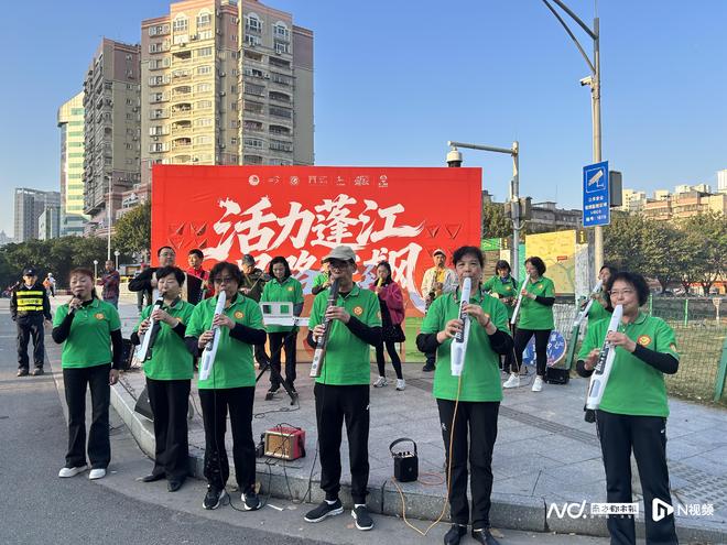 港口一路氛围点则是奏响奋进之歌,江门老干部大学阳光乐团的成员带来电吹管合奏《气势如虹》,激昂旋律搭配刘德华《中国人》《一起走过的日子》等经典歌曲,奏响了拼搏与坚守的号角,用不老热爱为江马喝彩。