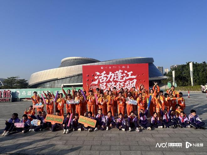 江门市体育中心体育馆门前的氛围点同样高潮迭起,屡获各级赛事大奖的范罗冈滨江小学雅范合唱团以纯净童声唱响粤语版《气势如虹》《冬至烧鸡》《星辰大海》,清亮的歌声成为赛道上最动人的“能量补给”。