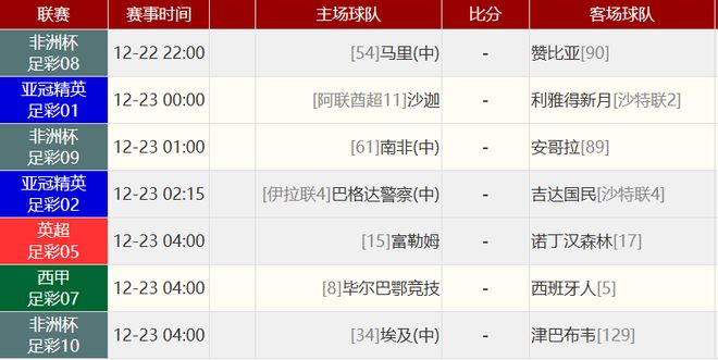 英超 阿斯顿维拉 2-1 曼彻斯特联 北京时间12月22日00:30,英超联赛第17轮,曼联客场挑战阿斯顿维拉。上半场舍什科两失良机,罗杰斯精彩兜射打破僵局,库尼亚闪电扳平,多尔古抢断助攻,下半场B费伤退,罗杰斯连场双响。最终曼联客场1-2不敌维拉,曼联联赛近4轮仅1胜,维拉豪取各赛事10连胜+英超7连胜。积分榜方面,曼联积26分位居第7距前四3分,维拉积36分名列第3距榜首3分。【双方比赛阵容】阿斯顿维拉出场阵容:23-马丁内斯、3-林德洛夫、4-孔萨、2-卡什、22-马特森(75’12-迪涅)、24-阿马杜·奥纳纳(84’10-布恩迪亚)、8-蒂莱曼斯、27-罗杰斯、44-卡马拉(88’26-博加德)、7-麦金(84’29-盖桑)、11-沃特金斯(75’17-马伦)替补未出场:40-比佐特、56-劳斯、16-安德烈斯·加西亚、53-海明斯曼联出场阵容:31-拉门斯、2-达洛特、13-多尔古、15-约罗(84’61-莱西)、23-卢克·肖、26-海文、7-芒特、8-B费(46’6-利桑德罗·马丁内斯)、25-乌加特(73’11-齐尔克泽)、10-库尼亚、30-舍什科(73’38-杰克·弗莱彻)替补未出场:1-巴延德尔、22-希顿、12-马拉西亚、33-弗雷德里克森、70-曼塔托西甲 比利亚雷亚尔 0-2 巴萨 北京时间12月21日23:15,西甲联赛第17轮,比利亚雷亚尔主场迎战巴萨。上半场,拉菲尼亚造点后亲自主罚点球命中,随后他又远射击中横梁,维加染红。下半场,德容助攻亚马尔破门。最终巴萨2-0比利亚雷亚尔。本场比赛过后,巴萨积46分仍居榜首,以4分领跑,比利亚雷亚尔少赛两场积35分,排在第四。德甲 海登海姆 0-4 拜仁慕尼黑 北京时间12月22日00:30,德甲联赛第15轮, 拜仁慕尼黑客场挑战海登海姆。上半场塔助攻斯坦尼西奇头球破门,奥利塞抽射扩大比分,下半场凯恩低射中柱,斯基默头球中楣,迪亚斯头球锁定胜局,凯恩补时建功,最终拜仁4-0海登海姆9分领跑。其他赛事比分:西甲 赫罗纳 0-3 马德里竞技西甲 埃尔切 4-0 巴列卡诺西甲 皇家贝蒂斯 4-0 赫塔菲意甲 佛罗伦萨 5-1 乌迪内斯意甲 萨索洛 0-1 都灵意甲 卡利亚里 2-2 比萨意甲 热那亚 0-1 亚特兰大德甲 美因茨 0-0 圣保利非洲杯 摩洛哥 2-0 科摩罗 赛事前瞻敬请留意