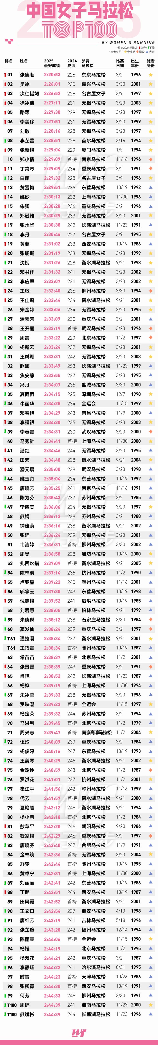 2025年中国女子马拉松年度百强榜