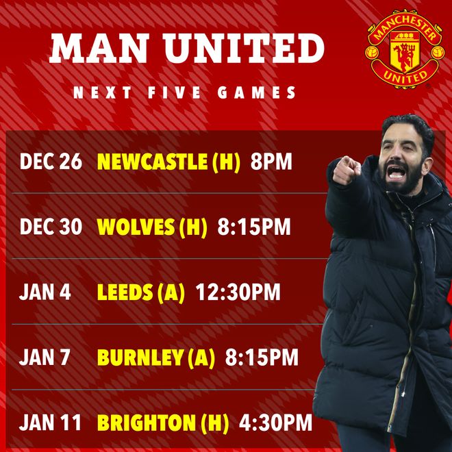 不过,英媒《太阳报》报道称,曼联希望「铁人」B费创造奇迹,能实现提前复出,至少参与客战阿森纳的英超联赛,如果运气好一点,甚至是对曼城的德比也不是不可能出战!阿莫林介绍说:「是软组织拉伤,我认为他(B费)会缺席几场比赛,但我不能确定。让我们拭目以待,我不知道。我不想谈论无法控制的事情,他一直都很健康,所以他可能会恢复得很好。我想科比(梅诺)下一场也可能继续缺席,布鲁诺缺席,所以我们必须找到解决办法,不找借口,我们需要赢得下一场比赛,我们会努力赢得下一场比赛。」梅诺是小腿受伤,这意味着40岁的阿莫林在12月26日对阵纽卡斯尔的比赛中,将只有两名正宗的中场球员可供选择。卡塞米罗结束一场禁赛后将再次出战,另一个是在维拉公园替代停赛的「胖虎」、近三个月来首次先发的乌加特,但后者本赛季所有打主力的比赛,曼联全部输掉。
