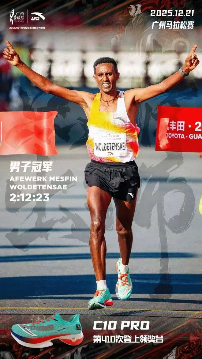 值得一提的是,他们的跑服以及脚上的C10 Pro跑鞋都印有同一个品牌logo——安踏。这意味着,在这些顶级跑者的背书下,安踏以近乎「包圆领奖台」的存在感,为这场年度收官战增添了浓墨重彩的一笔。