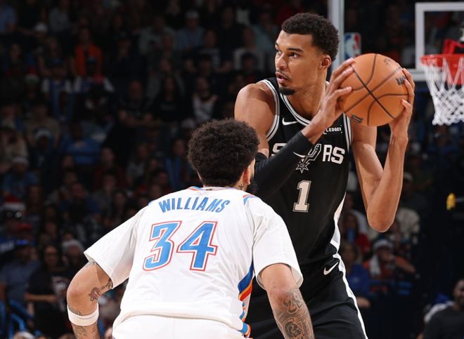 NBA的权力版图正在我们眼前悄然改变。赛程安排很少能催生如此迅速的格局变动,通常情况下,只有伤病或交易才能让联盟格局发生整体性的转变。但马刺在13天内3胜雷霆的壮举,无疑意义非凡。这场西部榜首两强之间的漫长季后赛预演,确凿无疑地证明:马刺已经准备好与卫冕冠军并肩站在联盟之巅。雷霆球星亚历山大坦言:"短时间内连续三次输给同一支球队,只能说明他们比你更强。所以我们必须变得更好,必须认真反思——从上到下的每一个人,如果我们想实现终极目标,就必须做出改变。"马刺正在用表现证明,他们或许就是目前联盟中最好的球队。他们已经连续两场大胜雷霆,两场比赛都早早进入垃圾时间,一场在主场,一场在俄克拉荷马城的客场。他们拥有三名能在48分钟内有效组织进攻的后卫,而这三人甚至都不是球队的最佳球员。刚从小腿伤势中复出的文班亚马仍受出场时间限制,距离最佳状态更是相去甚远。在年终大战117-102战胜雷霆后,文班亚马表示:"我们绝不会让任何个人的天赋凌驾于团队之上,这正是我们能够击败强队的关键。"马刺如今的领先地位并非仅仅因为几周的出色表现,而是源于赛季开始以来从未停止的成长,而且他们仍有巨大的进步空间。不久前,雷霆还打出了NBA历史最佳开局。但在经历这段艰难赛程后,他们对马刺的领先优势已缩小至2.5个胜场。