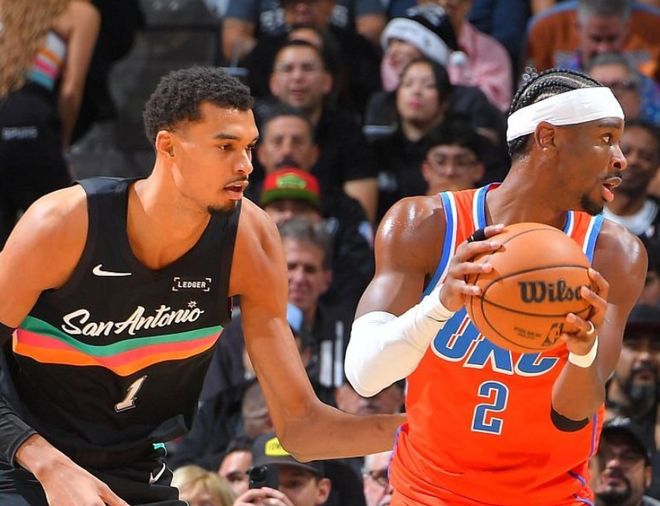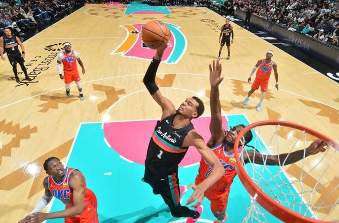 这个最华丽的泡沫被戳破的过程,要分两个部分说。第一部分:马刺三场胜利,赢法各不相同。第一场文班亚马统治第四节;第二场奇兵凯尔登约翰逊站出来,在文班亚马和福克斯身边不断发炮;第三场则是马刺后场三杰:福克斯+哈珀+卡斯尔轮流爆发,雷霆补了东墙漏西墙!马刺对待雷霆进攻策略很简单,第一是减少自己失误,不让雷霆抓反击机会。而阵地战中,马刺就放卡鲁索和多特两个空间累赘点,其他人突不进去,这两人又投不进去,阵地战雷霆哑火,只剩下罚球维持局面。而文班亚马的属性价值,在进攻端也很重要。