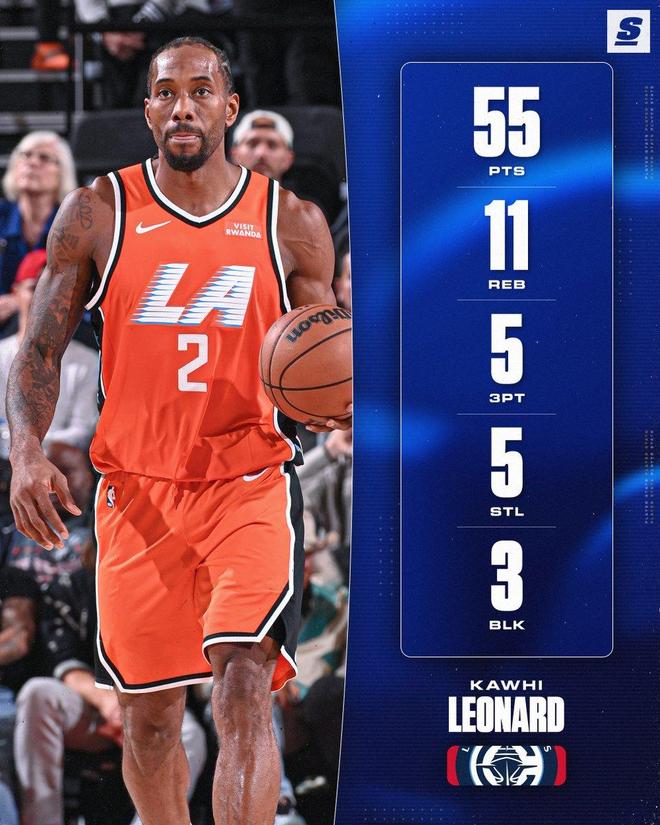 - NBA | 统治攻防,伦纳德砍55分11板2助5断3帽,55分创个人&平队史纪录