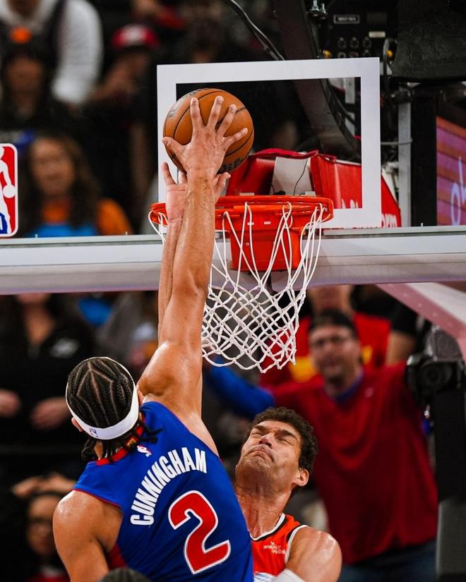 活塞连续外线打铁,杜伦补扣,哈登与杜伦在中距离对轰。巴图姆命中三分球,泰伦卢挑战判罚成功,大洛封盖康宁汉姆,小卡命中2+1,康宁汉姆出现个人第3次犯规,尼德豪泽补扣,巴图姆外线继续发难,快船又打出了17比8的攻势,将分差扩大至19分。斯图尔特勾手得分,随后完成补扣,哈登被霍兰封盖,勒维尔上篮得分,活塞回敬6比0的攻势。首节打完,快船以33比20领先。哈登单节12分,小卡13分。次节较量,小卡抢断后上篮不进,霍兰冲击内线得分,斯图尔特封盖小卡,大洛补篮得分。斯图尔特禁区得分,勒维尔、小卡各有2罚全中,斯图尔特反击暴扣,活塞将分差缩小至个位数,泰伦卢请求暂停。巴图姆轰进三分球,邓恩上篮打进,邓肯罗宾逊2罚全中,巴图姆继续远投发难,哈登篮下得手。杜伦抛投命中,小卡连投带罚得到4分,快船轰出14比4的攻势,重新取得19分领先。杜伦中投得分,随后完成暴扣。小卡封盖康宁汉姆