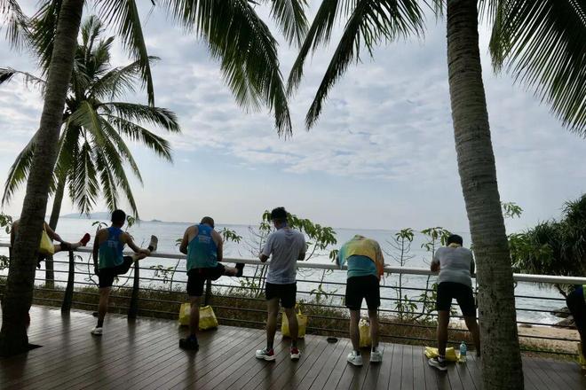 我们在天涯海角景区也注意到,诸多半马跑者在完赛后,面朝大海从容拉伸,等到完全舒展身体后,他们换上便装,自然融入观光消费的人流中,从比赛模式无缝切换至度假状态。