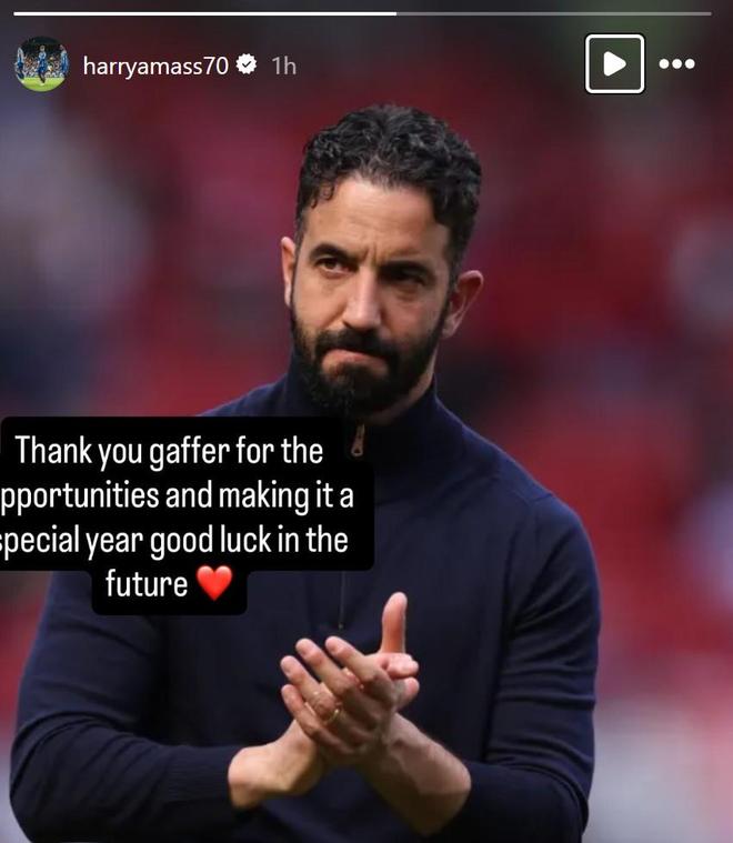 在阿莫林下课后,曼联外租小将哈里-阿马斯在社交媒体发文告别。