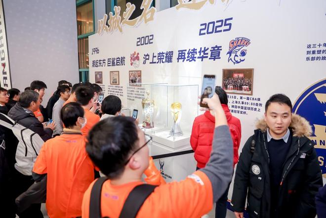 一旁的张先生是“小黄鱼”球迷组织成员,2019年加入至今几乎未错过主场任何一场比赛。2002年夺冠时他还小,只记得父亲拉着他守在电视机前欢呼,如今近距离望见奖杯,模糊的记忆愈发清晰:“从被爸爸带着看球,到自己去卢湾体育馆追2元票的比赛,再到跟着组织呐喊,一步步走来才发觉时光飞逝。”