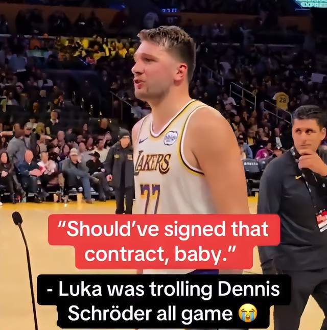 比赛结束大约40分钟后,在湖人主场的内部走廊,施罗德赛后主动去找的,正是东契奇。