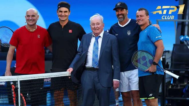 表演赛的喧嚣渐渐散去,灯光也暗了下来。费德勒与一众老友坐在一起,大屏幕配合播放着那些画质有些陌生的早期比赛影像,有些感受费德勒还记得,也有些细节他已经记不清了。