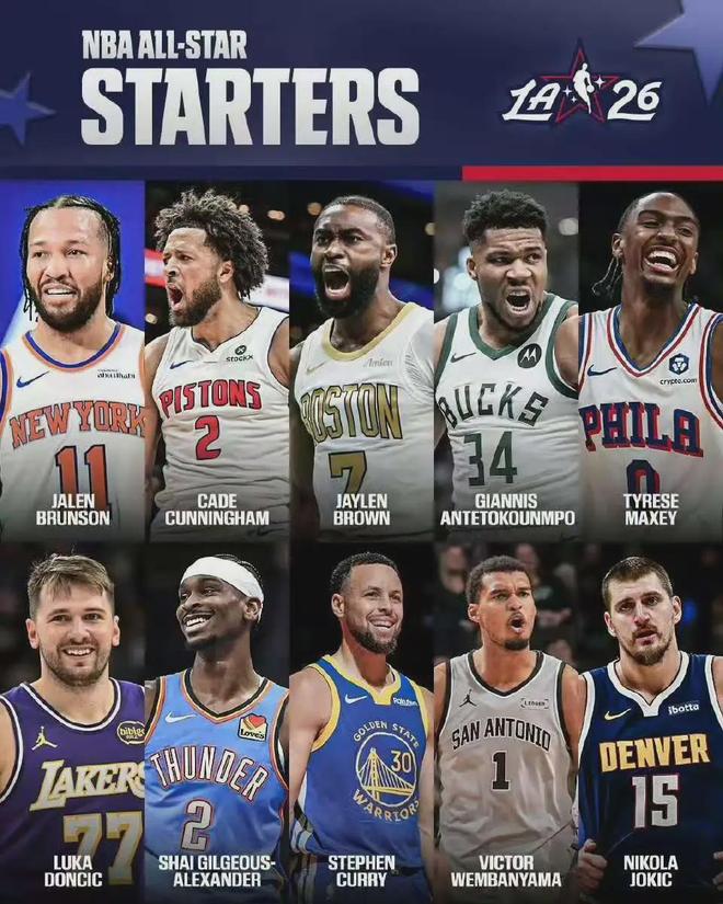 千呼万唤始出来,NBA全明星首发阵容如下: