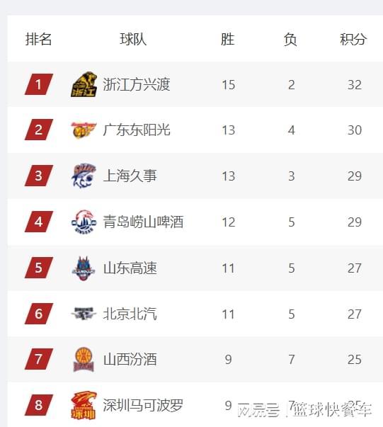 附:CBA积分榜最新排名