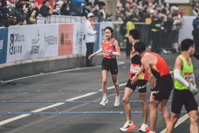 最后一公里多,重马赛道氛围特别好,两边都有人,他们的声音完全盖住了你身后的声音,只能听到两边的欢呼。我跟自己说一步都不要放。就是很有可能后面的人一下子一个侧身位就把你绝杀了,我就这么一直提着那根神经,万一旁边突然闪出来一个人怎么办?一定要咬住,我一直跟自己说,不要放,不要放。