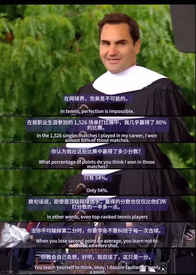 但他告诉我们:别太纠结每一次击球,只是一分而已。努力赢下下一分,才是当下最重要的事。